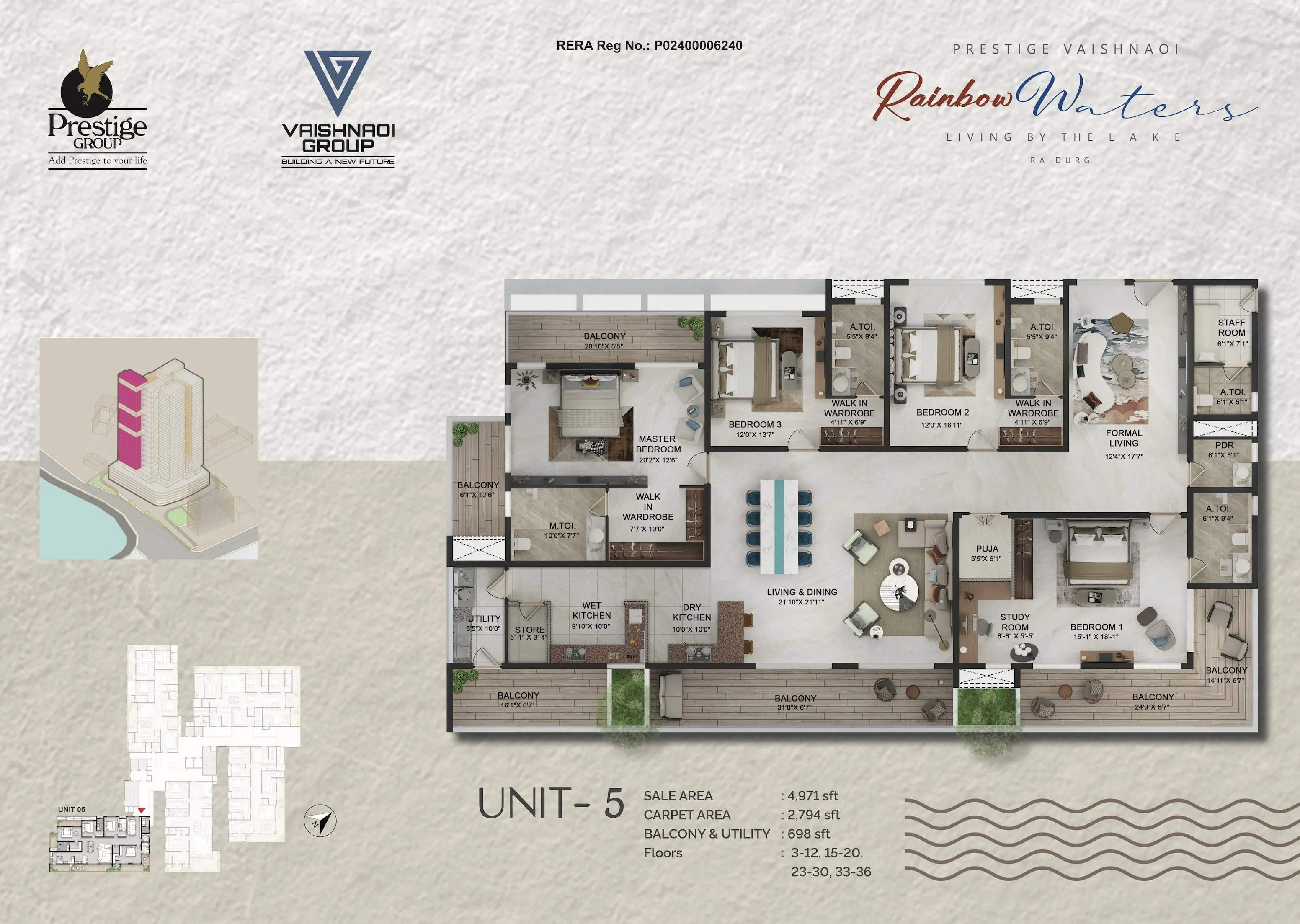 2. Exclusivity: With only 150 meticulously designed, air-conditioned 4-bedroom and duplex homes, ranging from 4955 to 8001 square feet, each boasting exquisite marble flooring. Spread across 2.42 acres, Prestige Vaishnaoi Rainbow Waters is tailored for Hyderabad's elite, offering unparalleled opulence and privacy.